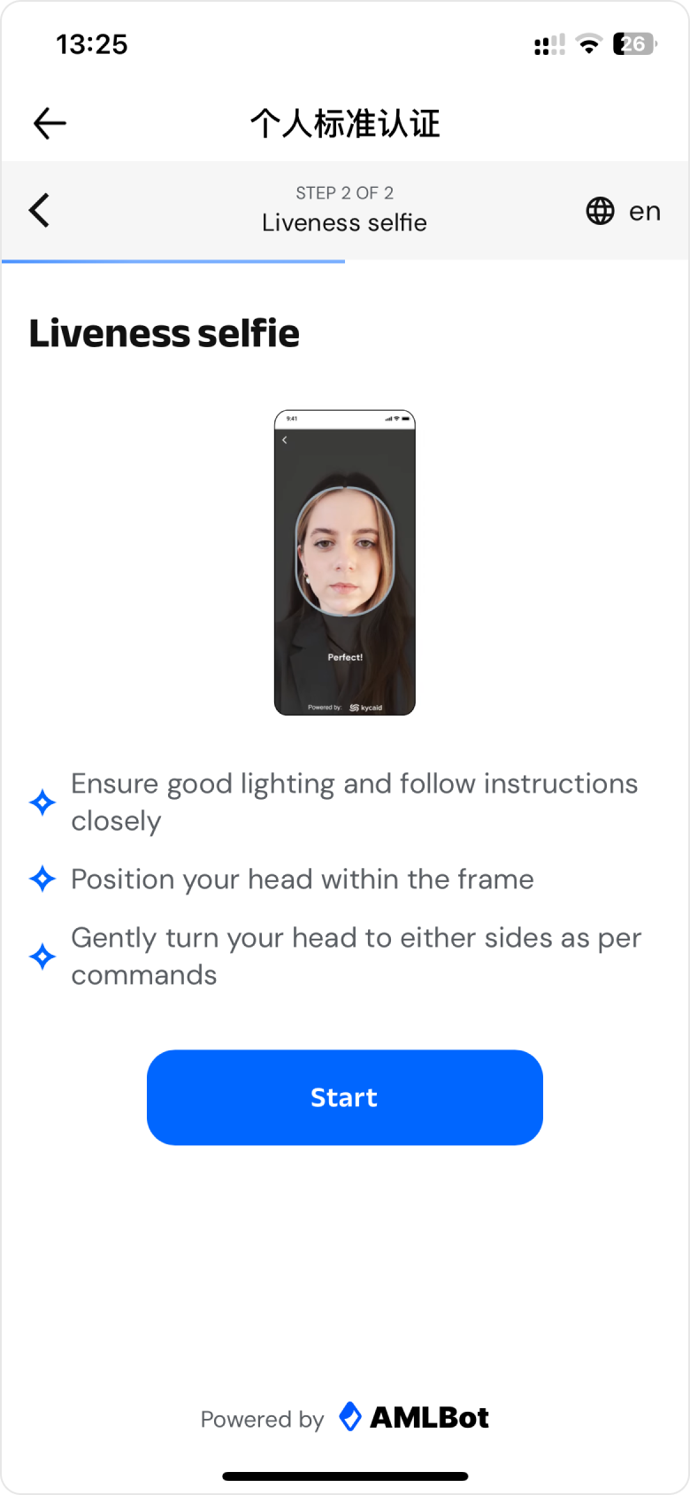 5. Complete the liveness check as instructed. After submitting your verification request, please wait patiently for the system to review your information.